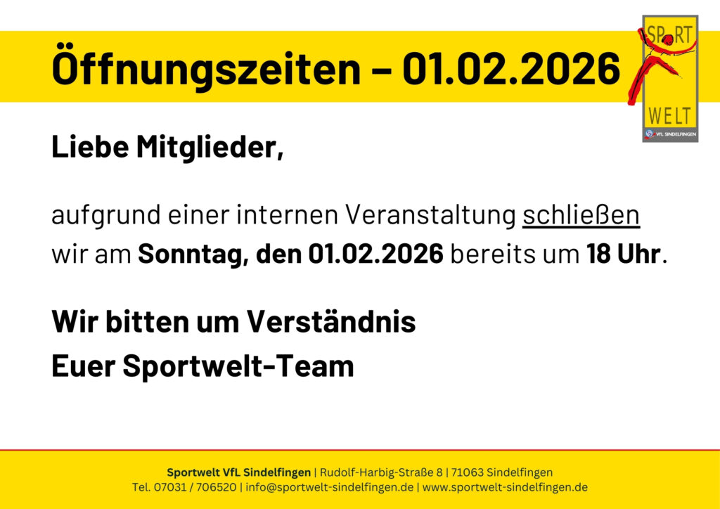 Öffnungszeiten der Sportwelt – 01.02.2026