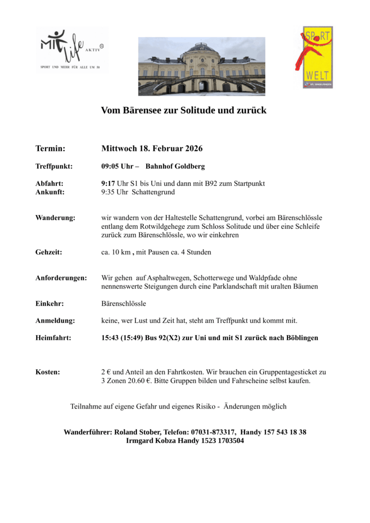 Wanderung: Vom Bärensee zur Solitude und zurück
