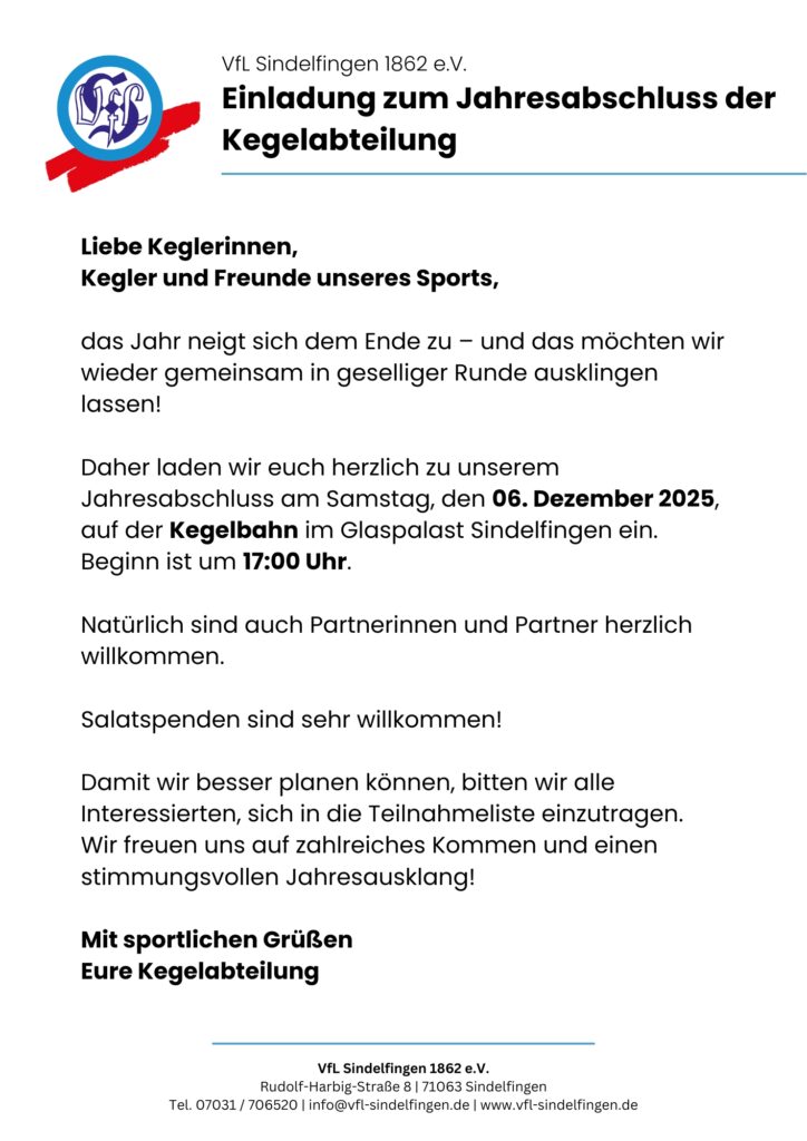 Am 26.06 2025 fanden wieder die von den Schulen organisierten Bewegungsinseln statt, in denen auch das Kegeln beinhaltete. Demnach waren wieder ca. 120 Schüler und Schülerinnen auf den Kegelbahnen, um unter Anleitung das Kegeln zu erlernen. Pünktlich zum Saisonbeginn werden die Kegler/innen mit neuen Trikots und Trainingsanzügen ausgestattet. In der neuen Saison startet die Frauenmannschaft […]