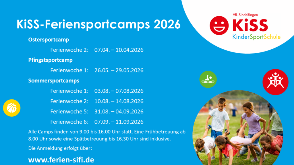 Neben verschiedenen Sportarten und kleinen Turnieren steht jede Menge Bewegung und noch mehr Spaß auf dem Programm! Das Angebot gilt sowohl für KISS-Kinder als auch für Kinder, die nicht in der Kindersportschule angemeldet sind.