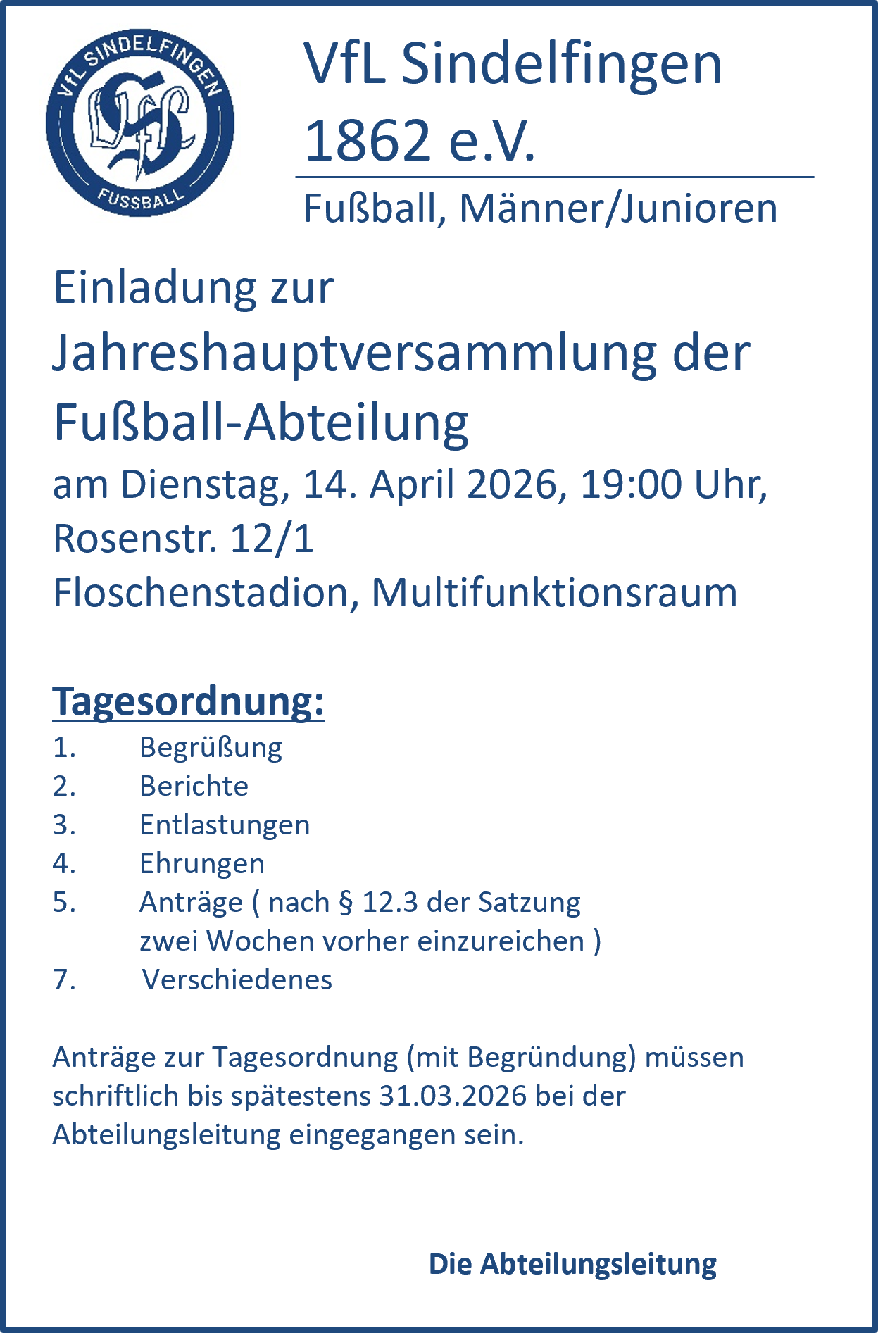 Jahreshauptversammlungen der Abteilungen 2026